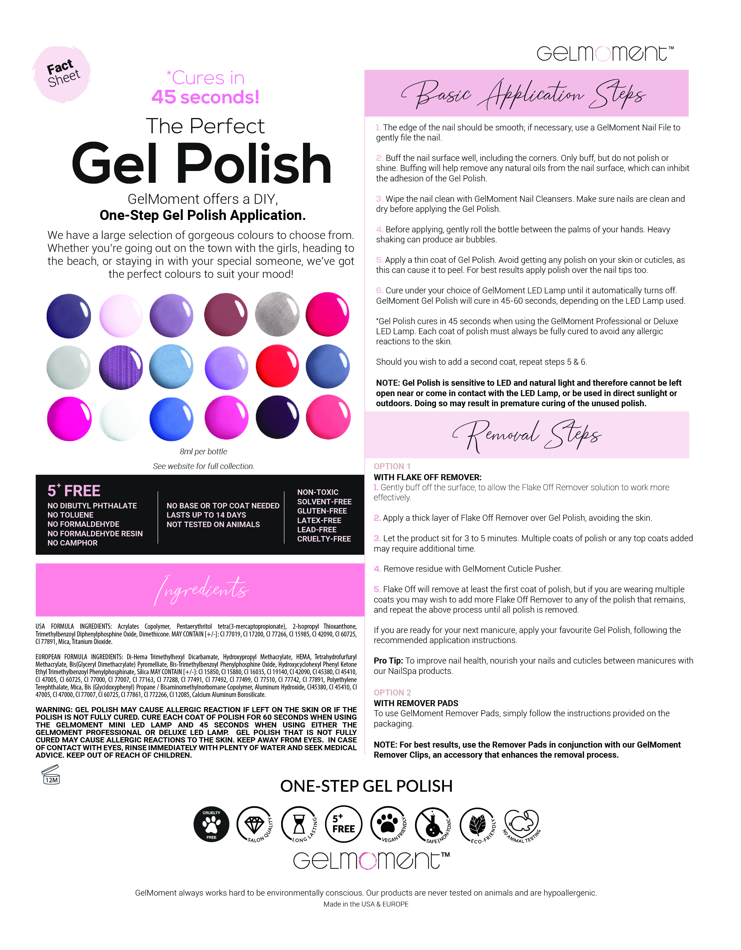 Made in the USA. Actual gel polish colours may vary slightly from digital images.
