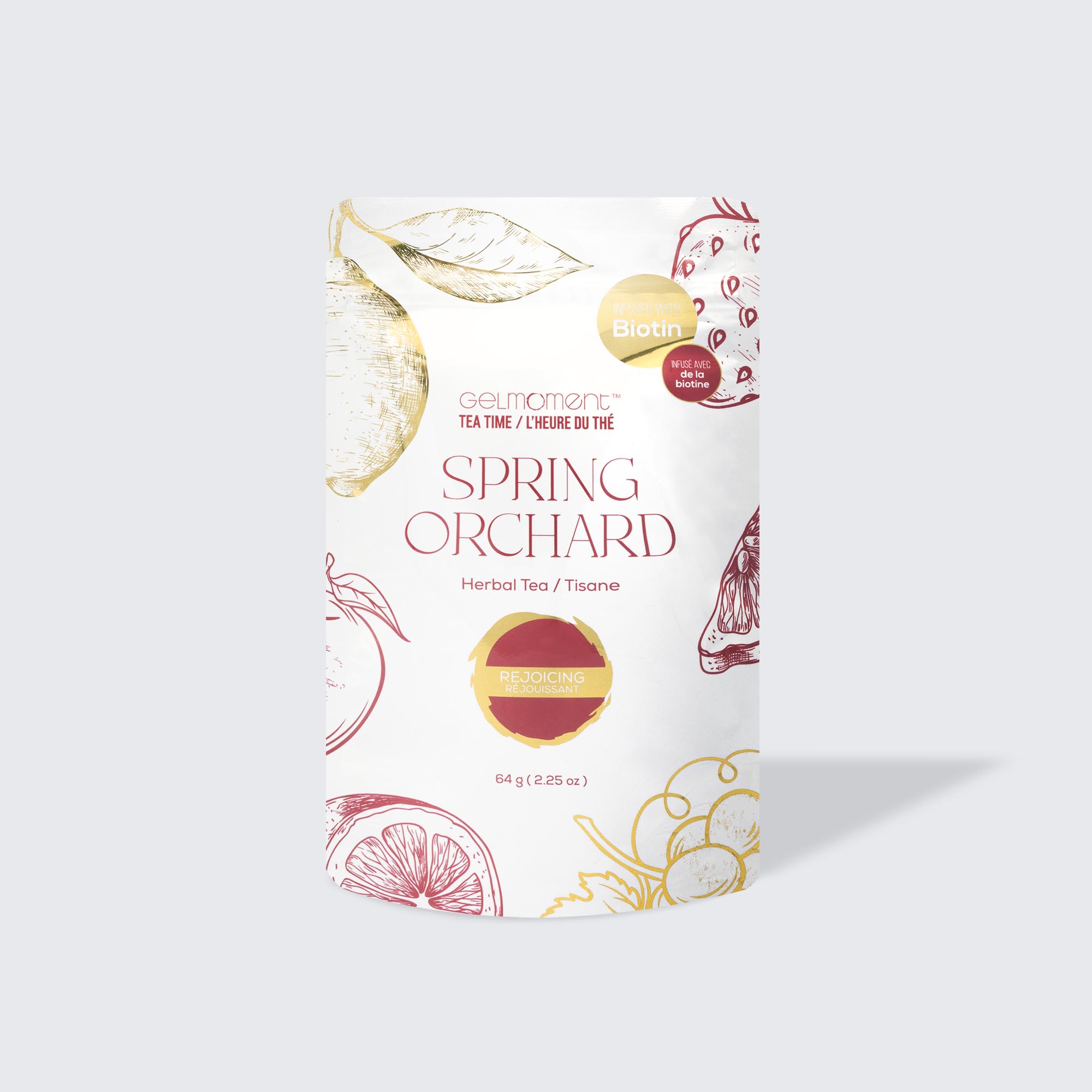 This cheerful and fruity blend combines the prebiotic effects of apples and the fresh sweetness of strawberries for the perfect happy moment. Add a tangy hue of lemon peels and marigold and really feel the zest for life. This tea will help maintain great balance within your body to keep you smiling all day long.