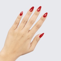 This bright strawberry red polish is cool and refreshing.